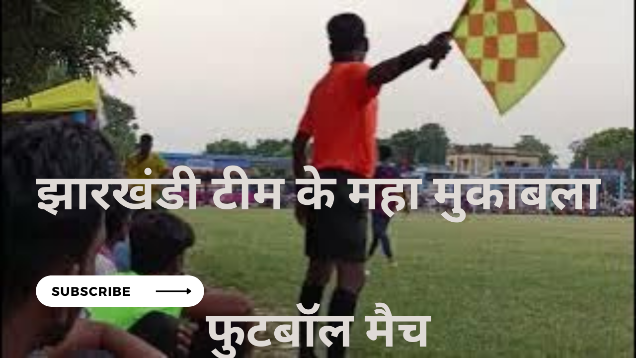 The language is written in Hindi. It means that football match between jharkhand's players. Jharkhand is a state of india and in jharkhand most of tribes or native peoples lives.