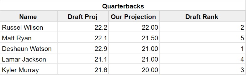 It's not that we have bad quarterbacks, but we have a lot of good quarterbacks with good matchups. Here are our top guys: