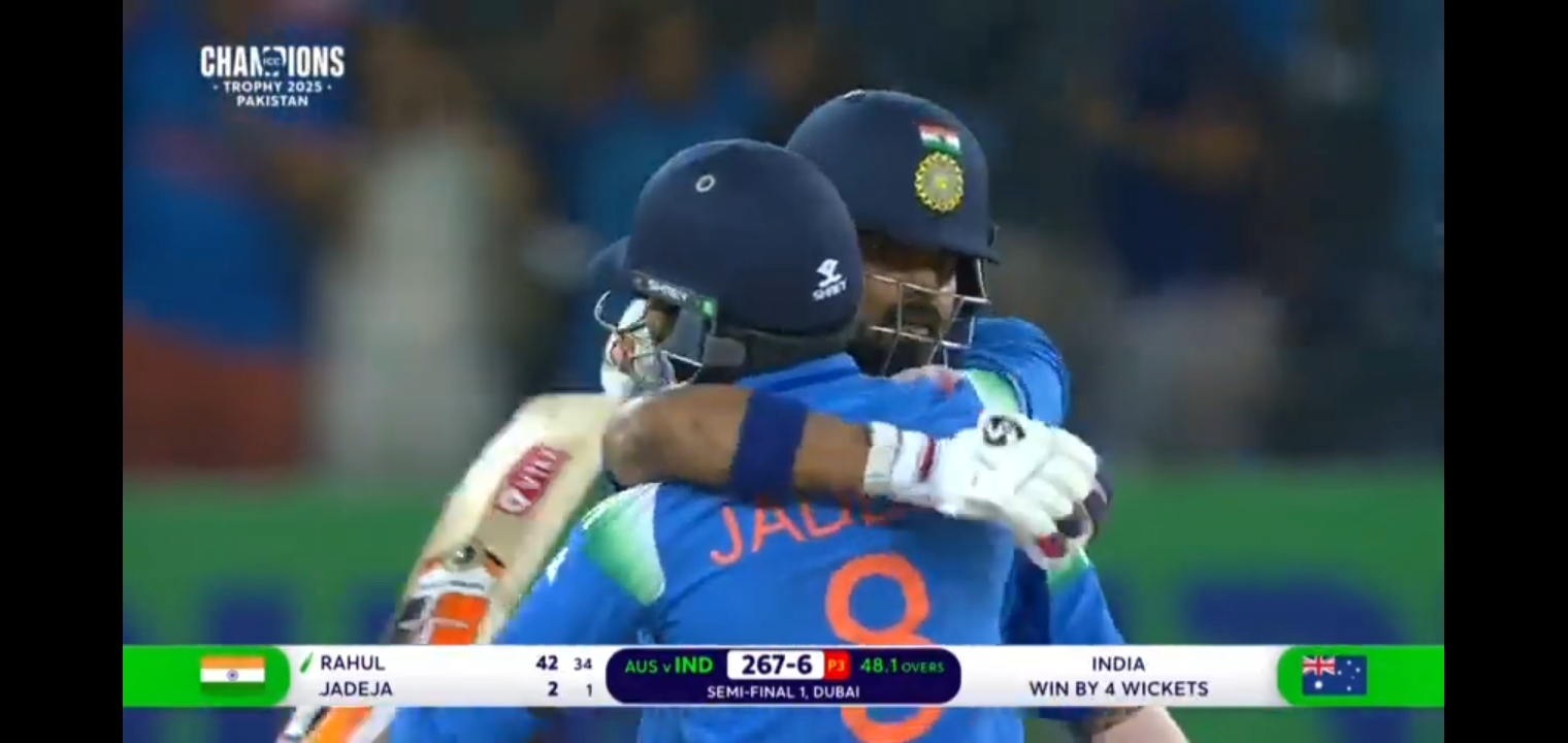 ভারতের দলীয় সংগ্রহ যখন ১৩৪ রান তখন শ্রেয়াসায়ার আউট হয়ে যায়। তারপর মাঠে আসে এক্সার পাটেল। এক্সার পাটেল নামার পর শুরুর দিকে ভালোই ব্যাটিং করতেছিল। তবে নাথান ইলিসের বলে লম্বা শট খেলতে গিয়ে বোল্ড আউট হয়ে সাজঘরে ফিরতে হয়। তারপর মাঠে আসে কে এল রাহুল। রাহুল নামার পর ভিরাট কোহলি হাফ সেঞ্চুরি করে ফেলে। তবে সেঞ্চুরির কাছাকাছি গিয়ে ভিরাট কোহলি আউট হয়ে যায়। ব্যক্তিগত ৮৪ রান করে মাঠ ছাড়ে ভিরাট কোহলি। শেষ অবধি কে এল রাহুল ও হার্ডিক পান্ডিয়ার ব্যাটিং এর সুবাধে জয়টা ছিনিয়ে আনে ভারত। আর এরই মাধ্যমে ফাইনালের টিকিট নিশ্চিত করে ভারত। কাল ফাইনাল ম্যাচ অনুষ্ঠিত হবে। দেখা যাক কার কপালে কাপ যায়।