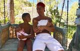 In the photo are his model, the pregnant woman, Georgina Rodríguez, his twin Eva and Matteo, and his son Christiano Jr., with the twin duo, Cristiano Jr. behind.