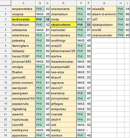 As you can see below, there were other contestants who picked PHI to win, but the 2 winners picked the Combined Total Points spot on with (58).