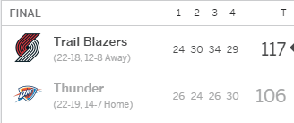You are viewing a single comment's thread from:RE: NBA Game Contest Thunder vs Blazers Tue 1/9/18 | Win 50% Free SBD |***ENTER TODAY***View the full contextvicspics (51)in #sports • 8 years ago blazers 223