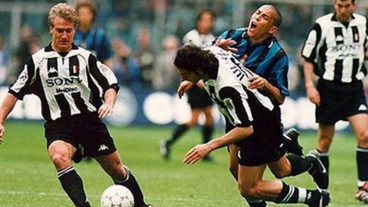Brazilian striker Ronaldo entered the box from the left, pushed the ball forward, and collided with Juventus defender Mark Iuliano, falling to the ground dramatically. Referee Ceccarini, just a few steps away, judged it a normal coming together and allowed play to continue; shortly after, in the opposite penalty area, Del Piero was fouled, and this time the referee awarded a penalty (which was later missed) to Juventus.