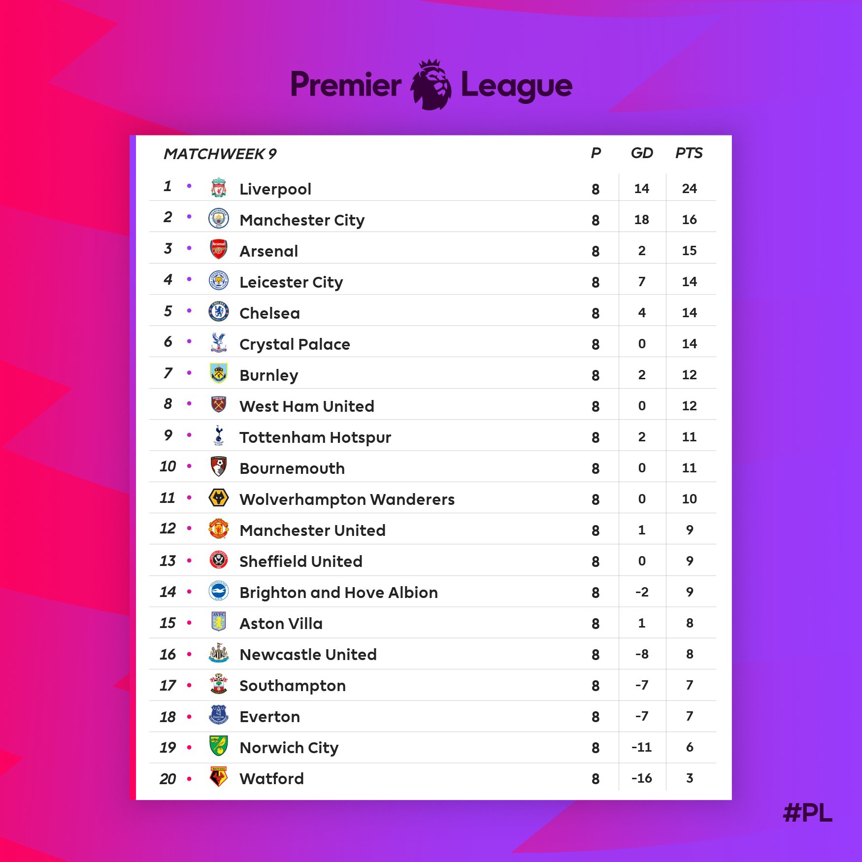 Liverpool fc* are still the group leader in the PL table after bagging 24 points from 8 games and are ahead of the defending
