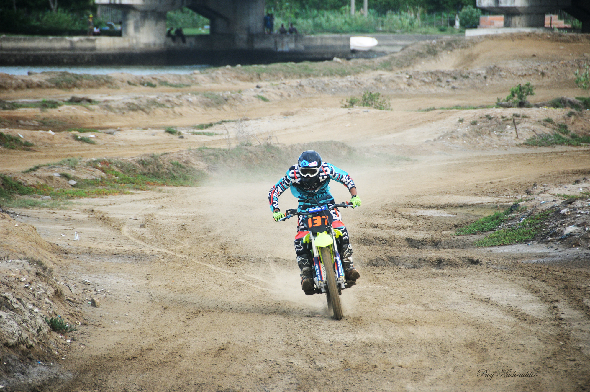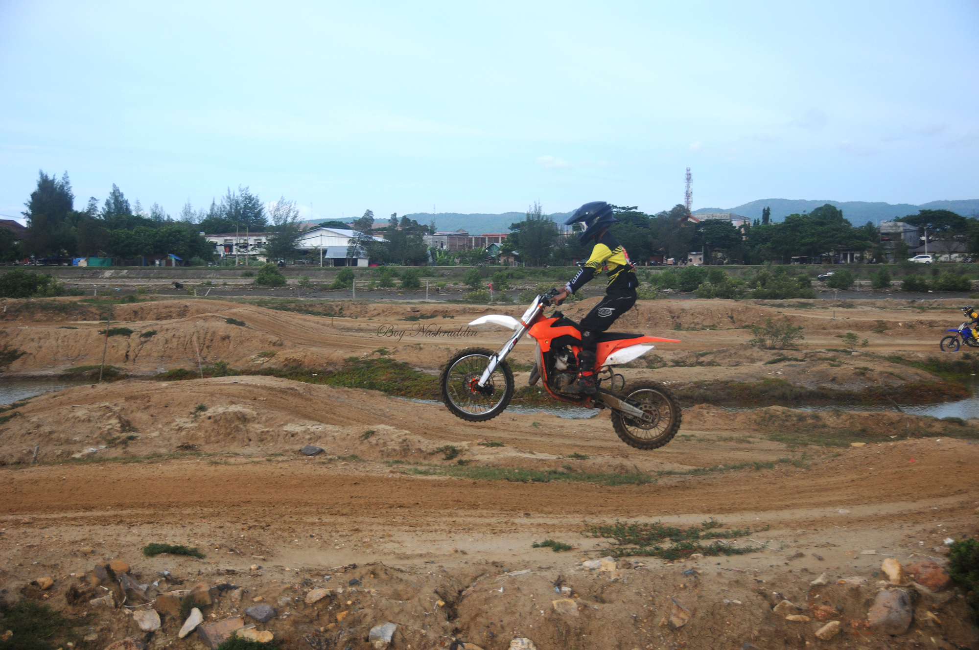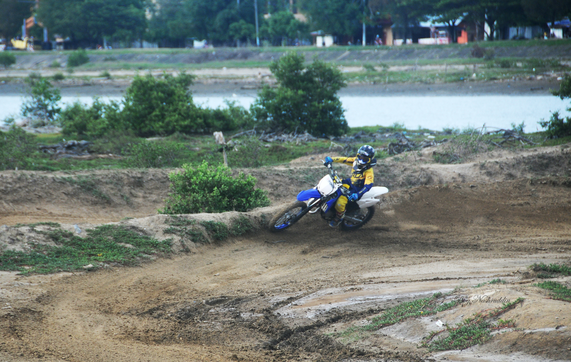 Beberapa pebalap di Kota Banda Aceh melakukan ujicoba mesin sepeda motor di lintasan yang dibangun pemerintah. Latihan ini sering dilakukan setiap Sabtu dan Minggu di bantaran sungai Krueng Lamnyong, Banda Aceh, Aceh-Indonesia. Jaraknya tidak terlalu jauh dari Kampus Darussalam.