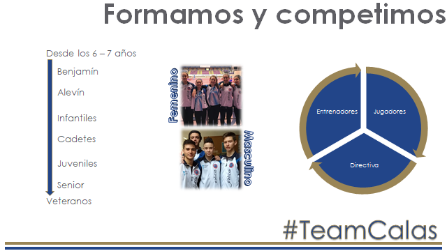 From there we have different teams both male and female in the different categories depending on their age, from prebenjamines, benjamines, alevines, infantile, cadets, juvenile, until arriving at the senior, and an indefatigable team of veterans that still continue giving war.