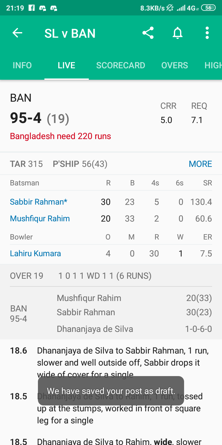 Now Bangladesh is batting and their current run is 95 at 19 over. And they lost 4 wickets.