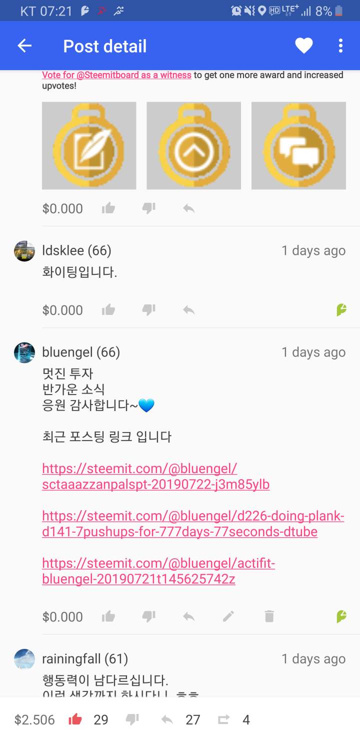 그렇게 많지는 않습니다. 댓글로 신청만 해주시고, #sportstalk 태그를 달어 스포츠와 운동과 관련된 포스팅을 하시면 수동으로 보팅을 해드립니다. 댓글을 반드시 달으셔야 합니다. 그러면 제가 그 댓글 보고 팔로우한 다음에 피드글을 보면서 수동으로 보팅을 하기 때문입니다.