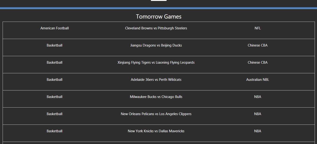 Some sports do not have more than two options while some sports have as much as six options for the users to choose from.