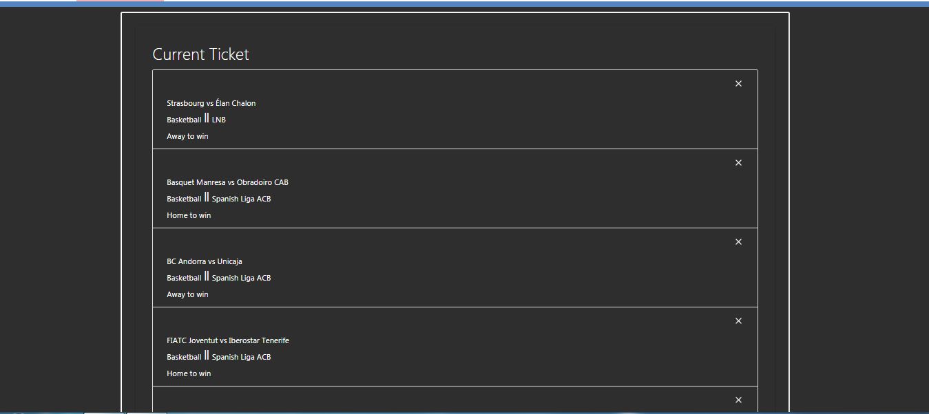 After choosing all desired options from sports available the user can then proceed to the VIEW TICKET tab on the same page to view the number of predictions on a prediction ticket.