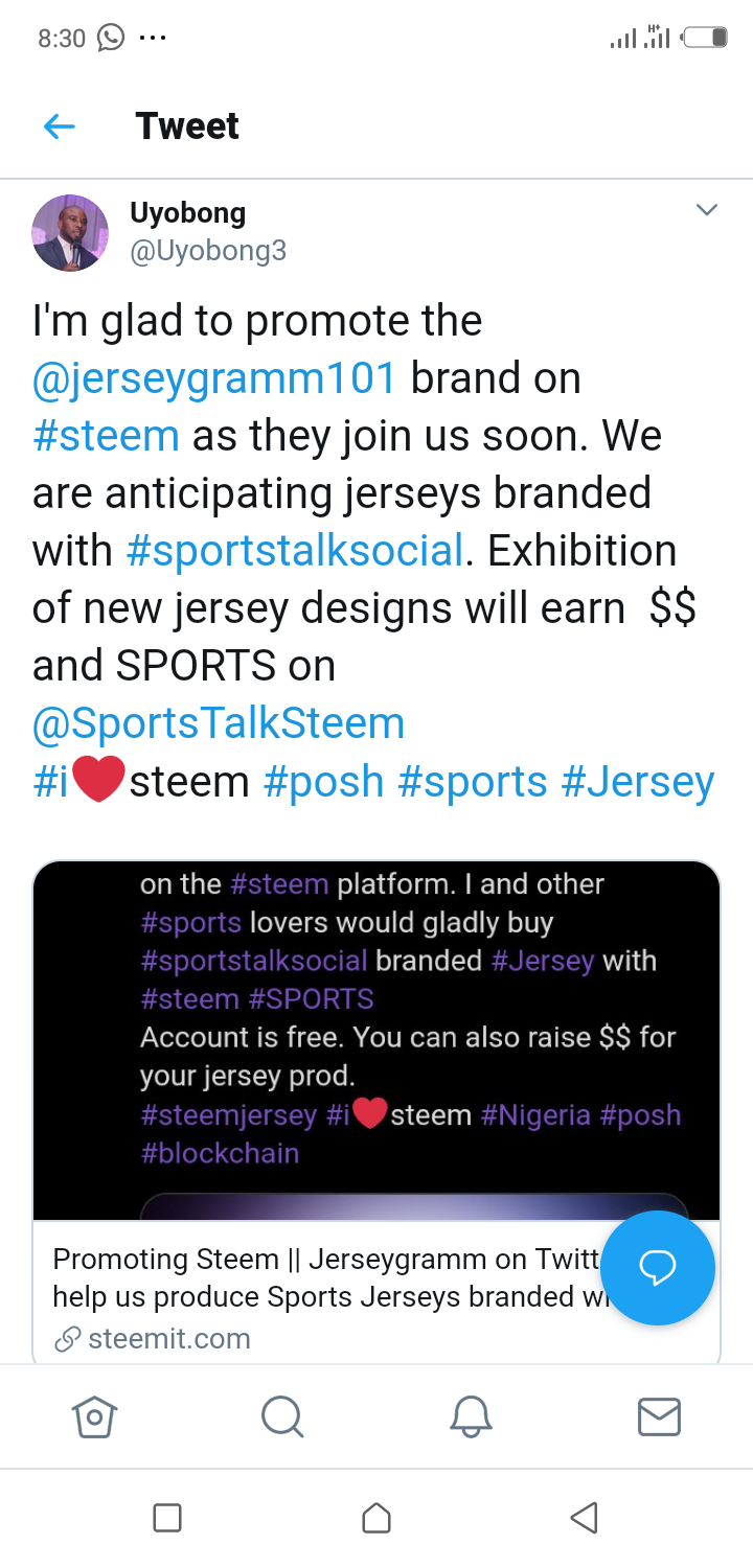 In my tweet in reply to Jerseygramm, I notified the company of the potentials on Steem to help them raise funds from an exhibition of their designed jerseys and as well grow their fanship base.