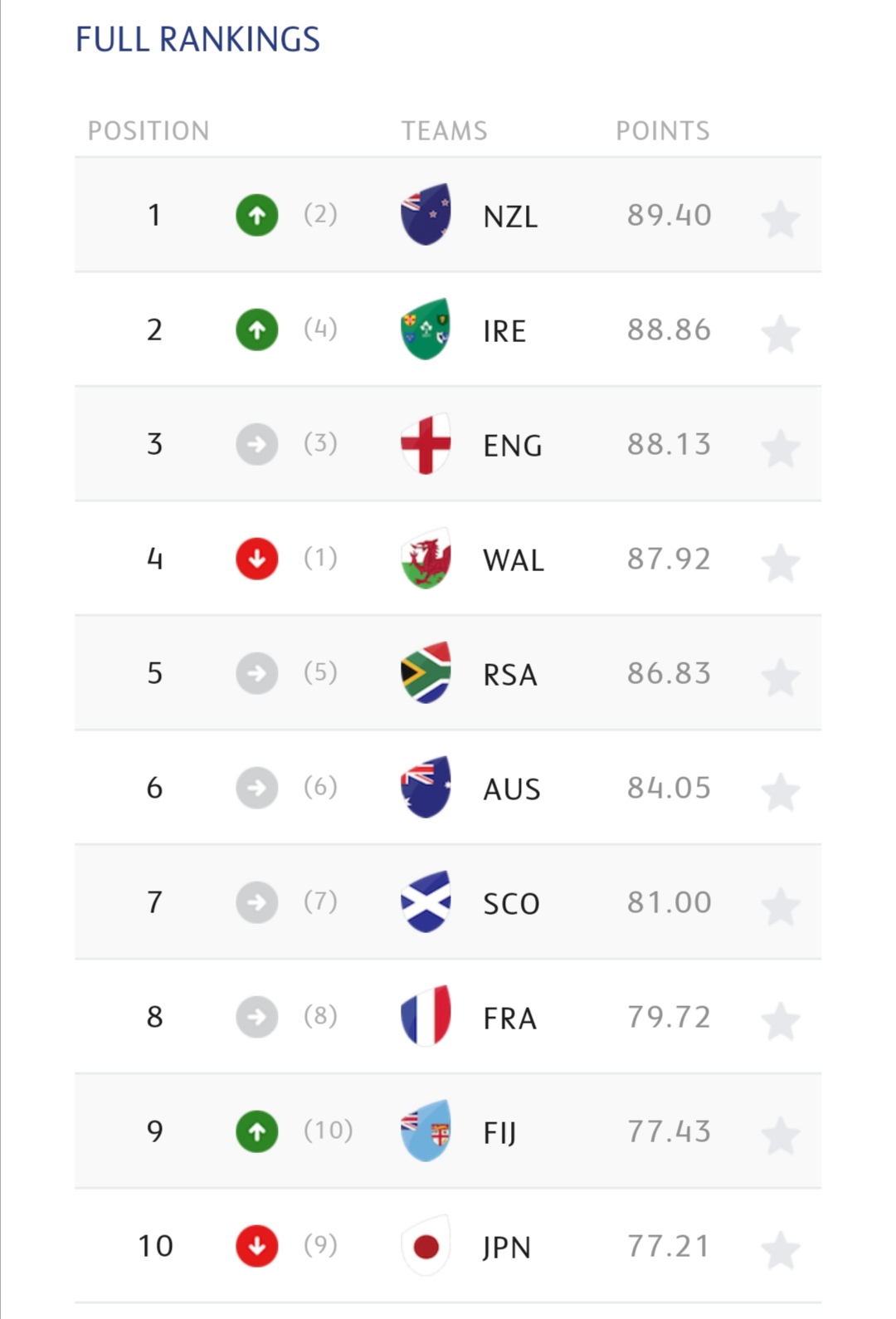 This is the current standings in the Rugby World rankings. New Zealand retake the number 1 spot from Wales, but is that the full picture??