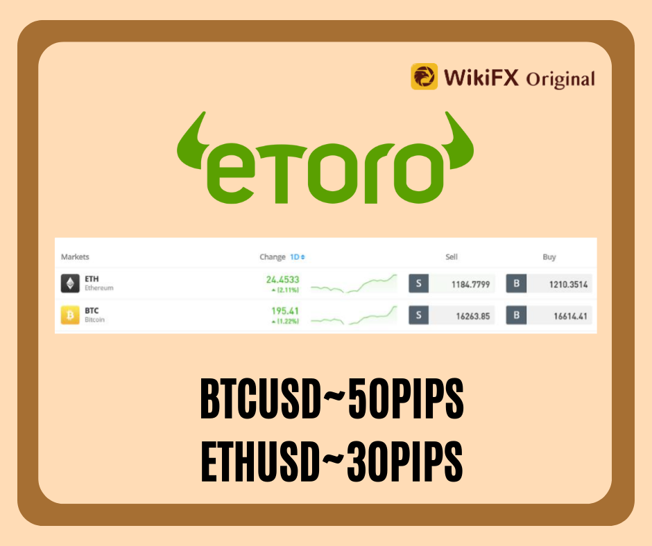 And different brokers will have different spreads on the same product, especially some unregulated platforms. Here we compare the cryptocurrency spreads between [Etoro] and [ICMarket]