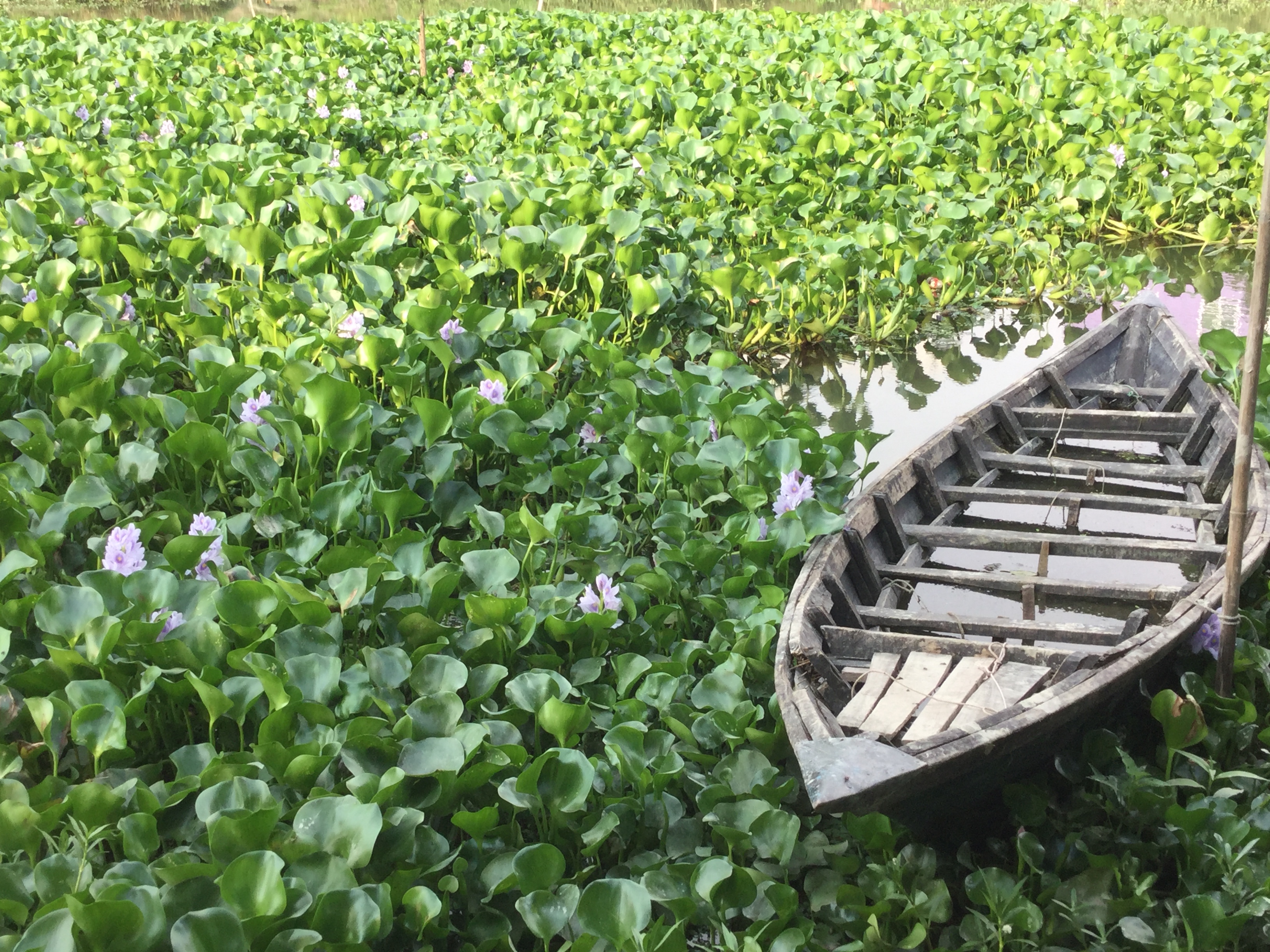 নদীতে ভরে গিয়েছে কচুরিপানা। নদীর এক পাড়ে ছোট্ট একটি নৌকা বাঁধা আছে। সমস্ত নদী জুড়ে কচুরিপানার ফুল শোভা পাচ্ছে। দেখলেই মনটা ভরে যায়। আমার সব থেকে প্রিয় ফুল এই কচুরিপানা ফুল। যেটা সব সময় সব জায়গায় পাওয়া যায় না। আর যদিও বা কোথাও পাওয়া যায় সেটা তুলতে অনেক বেগ পেতে হয়।