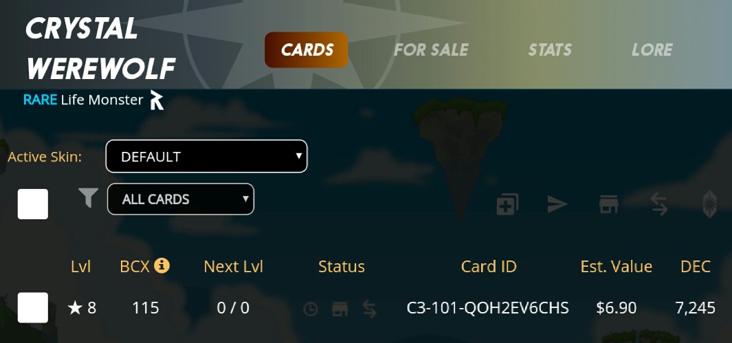To be honest, my daily quest rewards and season rewards playing two accounts for about four months now have not provided me with up to 50 Crystal Werewolfs. I decided to invest in reward cards, especially the rares, epics and legendaries so as to max them out before they reach their maximum distribution cap. I have been buying werewolfs at less than $0.07 and this has been my base price. I always buy it from time to time and I believe I have bought quite many in total.