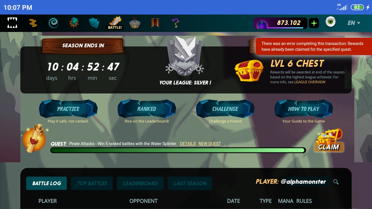 You should have seen what you claimed even though it's not cards but DEC or POTIONS 😜 and I'd prefer common cards like undead minotaur or sea monster rather than this error.