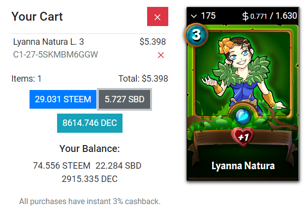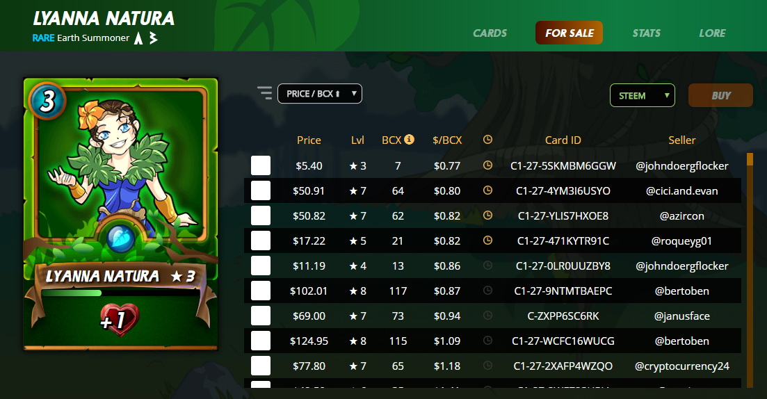 Lyanna Natura was the first one on my list when I was thinking about buying some summoner cards. The reason is especially that I already have a very good Earth deck and I wanted to make my summoners even more powerful to play in high league levels. There was a level 3 card available in the market. I wanted to buy that quickly. The fact was that the card was in a cooldown period but I did not mind that because I'm not planning to upgrade my card in the next few days.