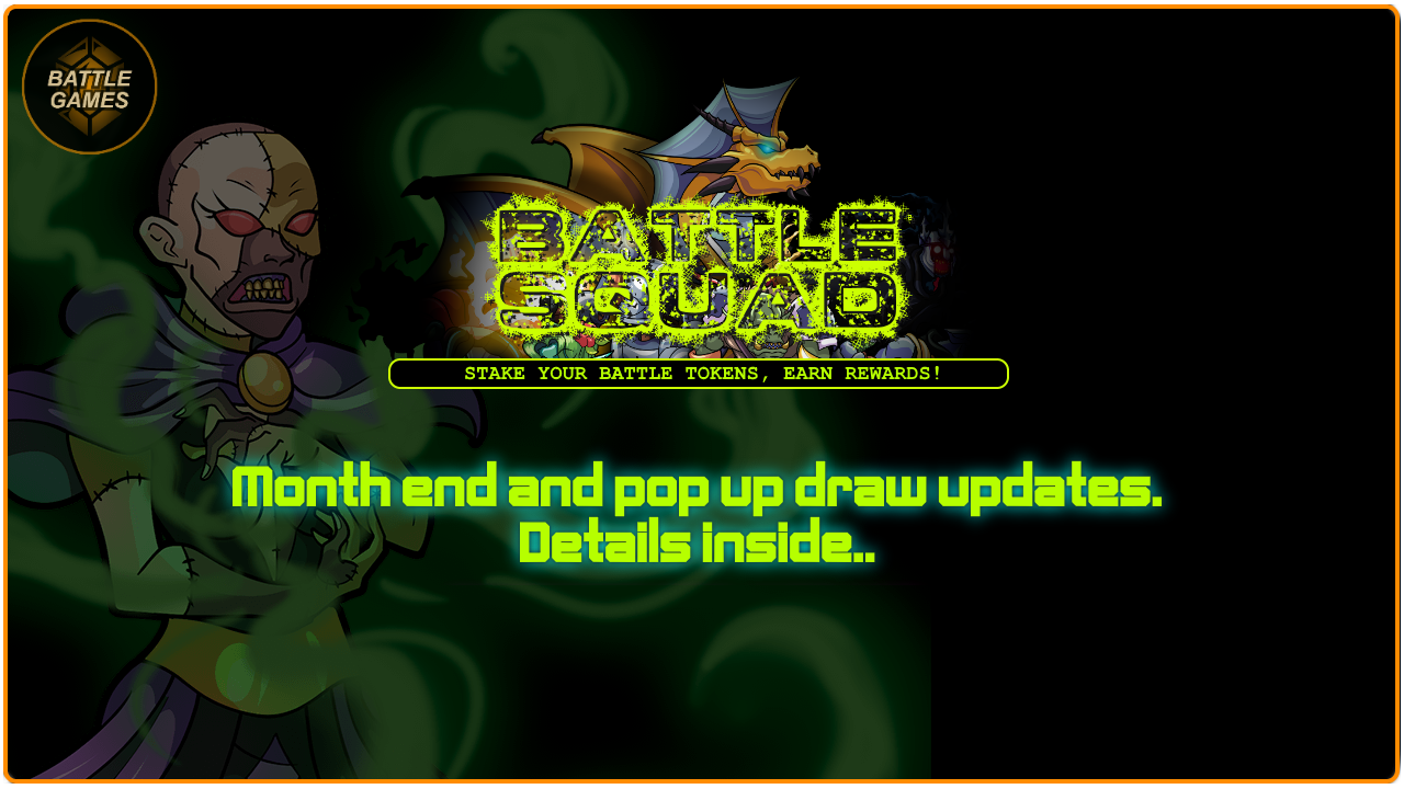 Our June months end draw will be held the evening of Sunday, June 30th and will be a Tier 3 Draw. Stake 1,500 BATTLE and you're entered.