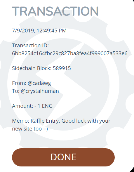 Sent 1 ENG to your account for 1 entry into the raffle.