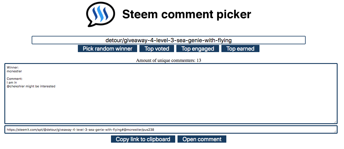 Here is the link of the original contest: https://steemit.com/spt/@detour/giveaway-4-level-3-sea-genie-with-flying