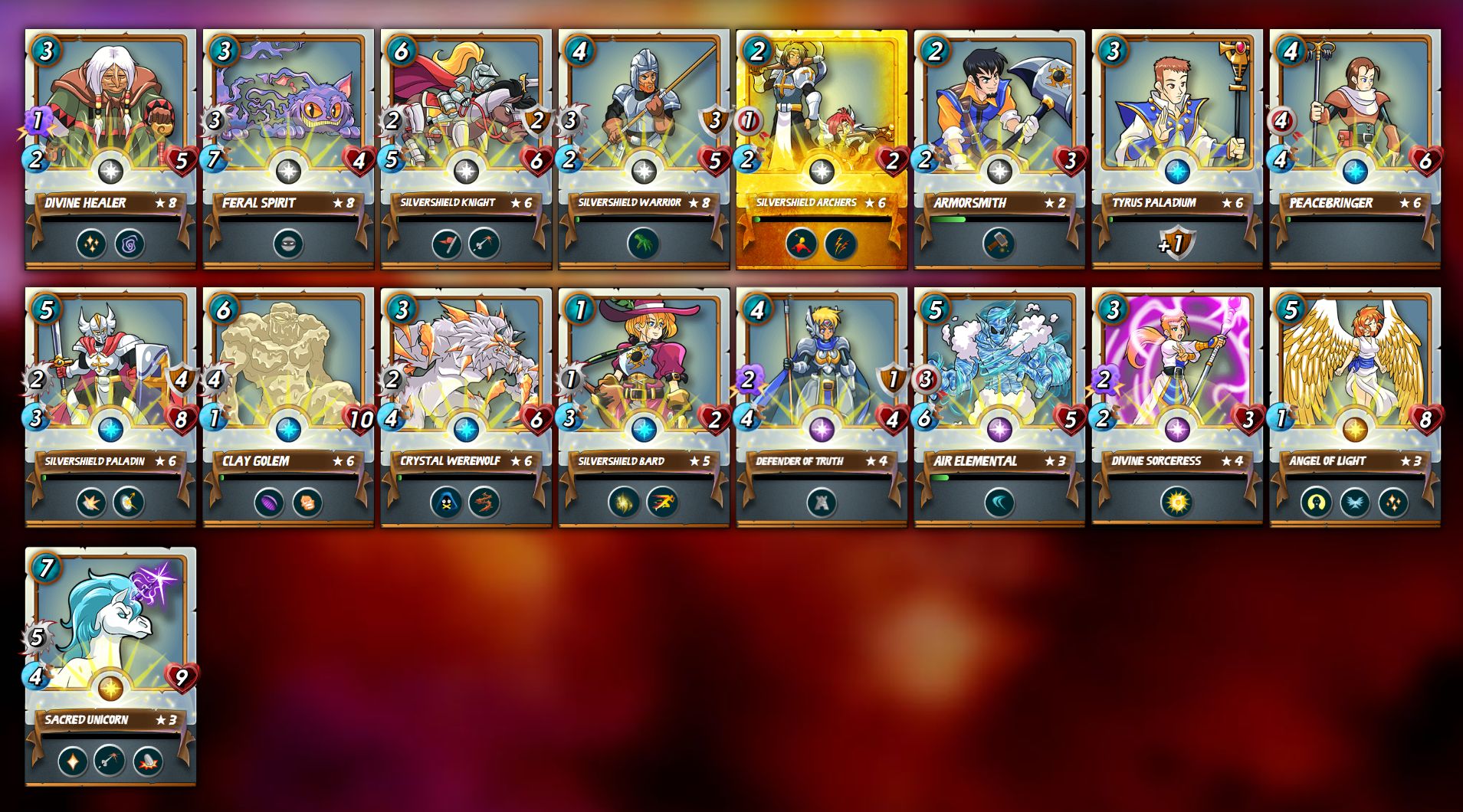 - Silvershield Archers (Gold) - Lvl 6 (+1 Speed and Health on lvl 8) - ok upgrade