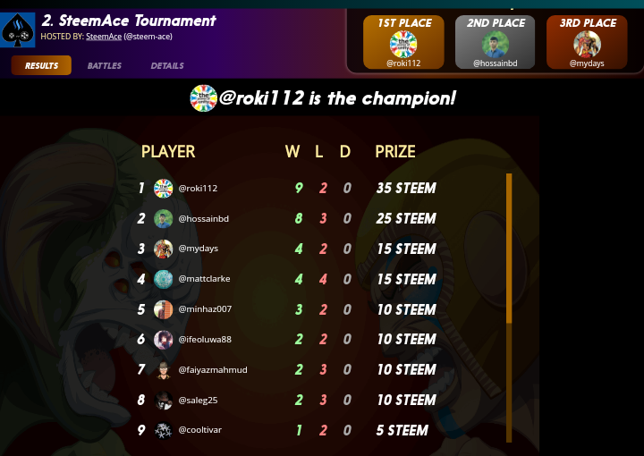 SteemAce (GG) silver tournament result