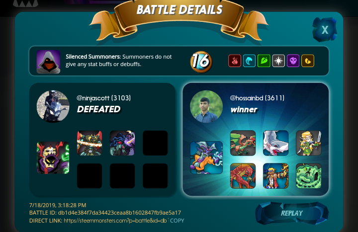 So in my opinion, I won the battle for luck, because my opponent team was very weak, if I share my strategy with everyone then I would say - never use rare summoners in this rules, because there only he will ruin mana not give anything in return, many players use legendary summoners in this rules, they should be more aware of their rules, so if you have epic summoners then use it, And if not, then I would suggest to play with any team other expect death, because on the above I share the log of the battle, i think it was the best team for 16 mana in this rules.