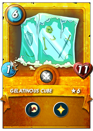 LVL 6 Gelatinous Cube carries 6 mana along with 2 amazing abilities at this level that is self-healing and Scavenger. I loved to use it as a tank or in the second position for many of the reasons named as to avoid the magic attack if I don't have any other magic reflector monster so I use it this way a lot. It has no attack ability but very powerful due to the above-mentioned abilities. I won many battles just because of this cube as a tank monster. The ruleset was already an Equalizer and its scavenger ability make it better.