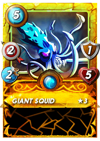 Giant Squid comes with 2 main abilities at different levels belongs to the water family from the Untamed edition. Its shape showed that its an ocean monster that has the power to feel their arrivals from miles aways. It comes under ranged monster so it could be used in certain rulesets as it carries 5 mana cap with low speed.