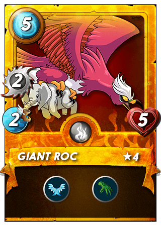 LVL 4 Giant Roc carries 5 mana along with 2 melee attacks so I used in the second position because it can attack from there. I had only Giant Roc to use at this position because my main focus to kill the melee monster of the enemy team. The ABILITY of this monster was helpful in the battle is: