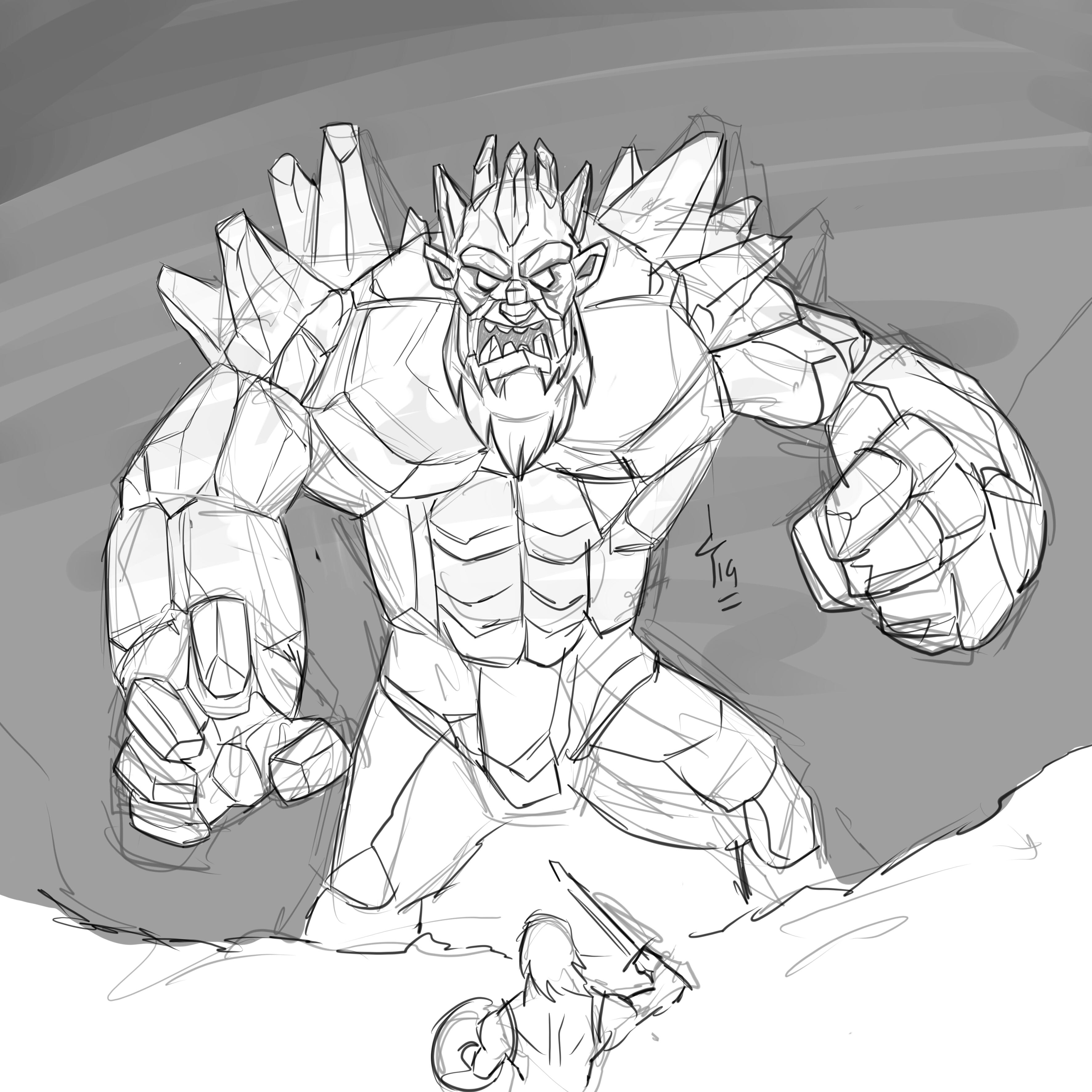 Hi friends, I am here again, I bring to all you guys a new artwork about splinterlands, in this time I am designing my own version of the Frost Giant card, this is the first sketch and soon I will publish the final art.