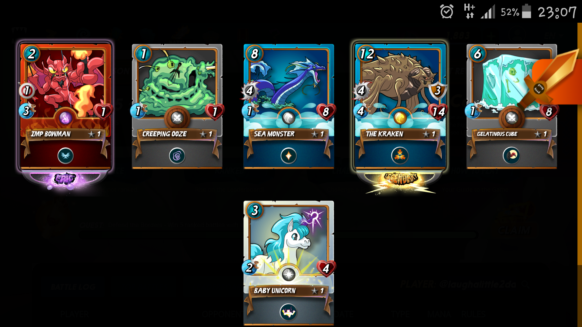 From my experiences, once I get a legendary monster from the quest rewards, I won't get any legendaries for several more seasons 😅😆 aaahh... I don't mind! whatever the rewards are.. as long as I enjoy the game then I'll be okay😊 in my mind.. with the Kraken (12 mana), the 99 mana of taking side ruleset will be amazing. I never had more than 49/99 so far. I miss the gloridax revenge too.