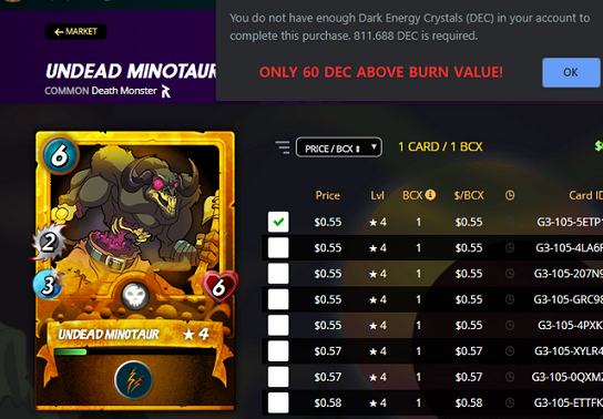 An interesting resource available to everyone is the possibility of burning cards into DECs, which provides a high degree of liquidity for anyone who wants or needs $ quickly.