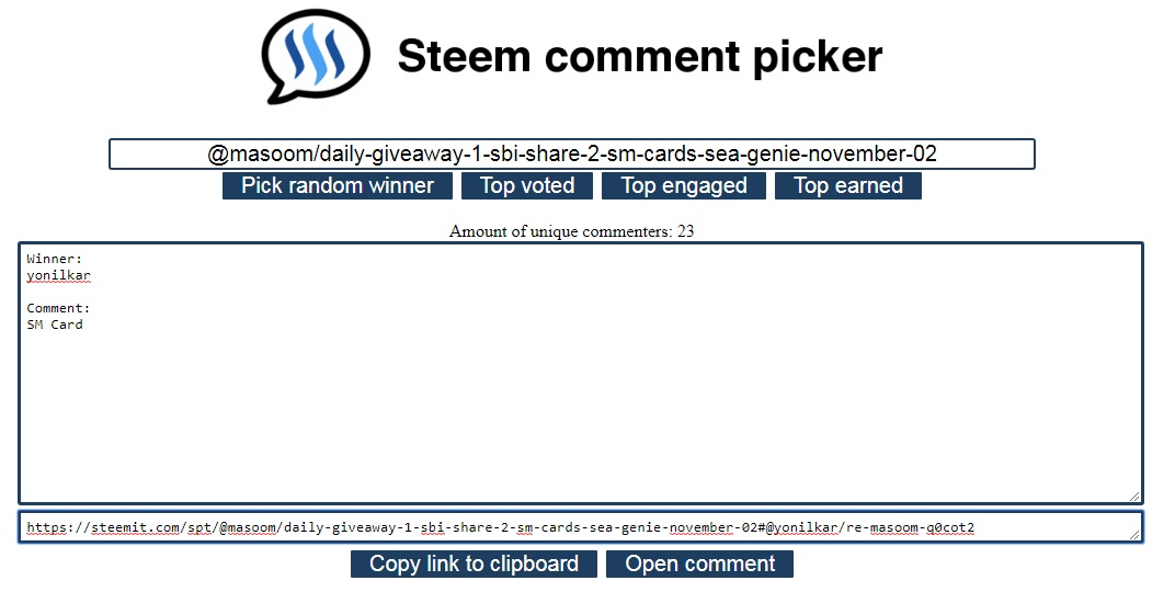 First of all i am announcing the winner of my previous contest