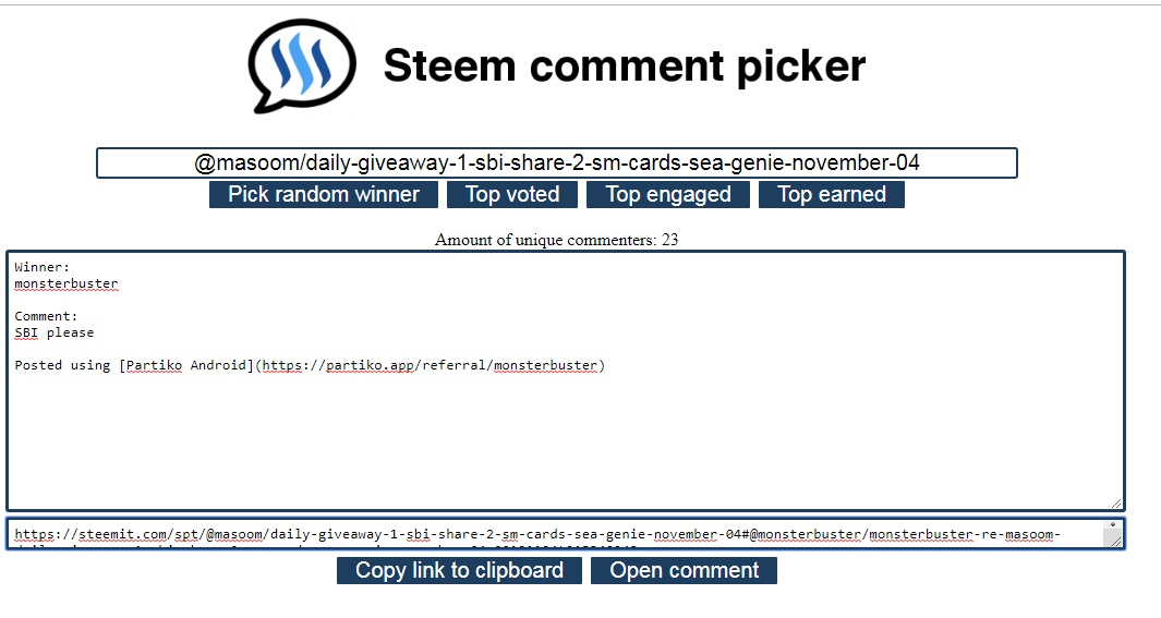 Congratulations @monsterbuster for winning sbi share