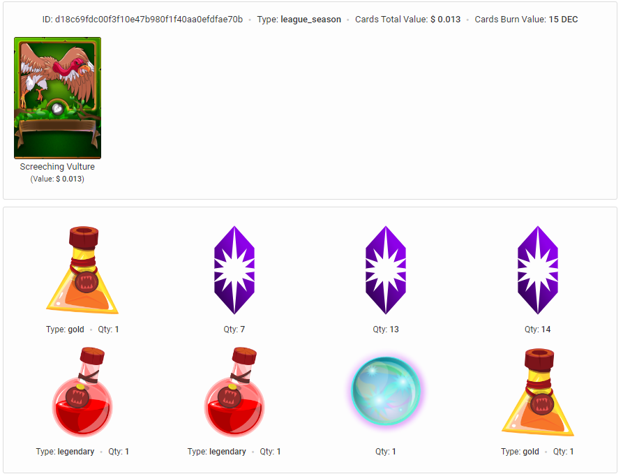 A practically worthless card, some DEC, orb, potions... I don't know how to value any of this anymore. Was it a good Season? No idea!