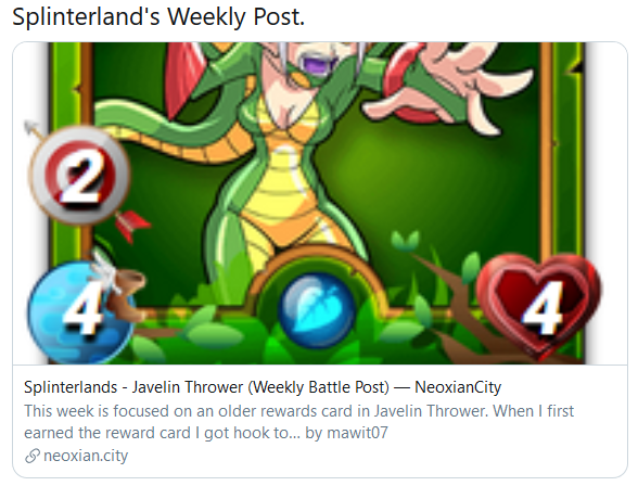 Splinterlands - Javelin Thrower (Weekly Battle Post)