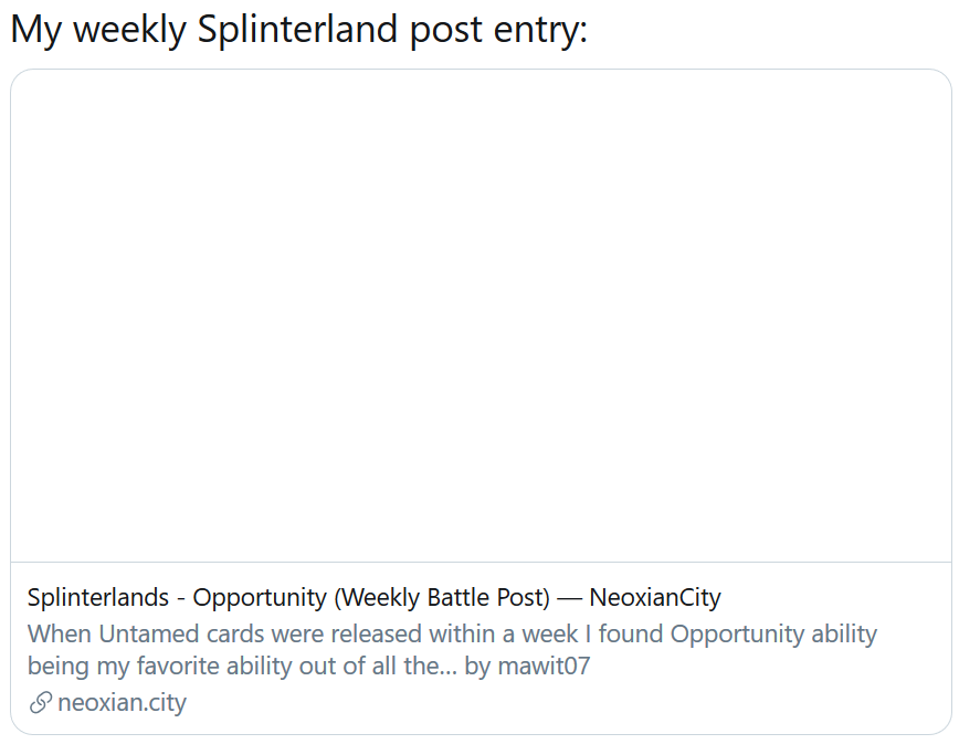 If You have yet to take part in playing this great game called Splinterlands please click on my referral link. It is free but in order to earn real assets such as cards and token you would have to invest in a starter deck or purchase game cards. Join the discord to learn more. Good luck!