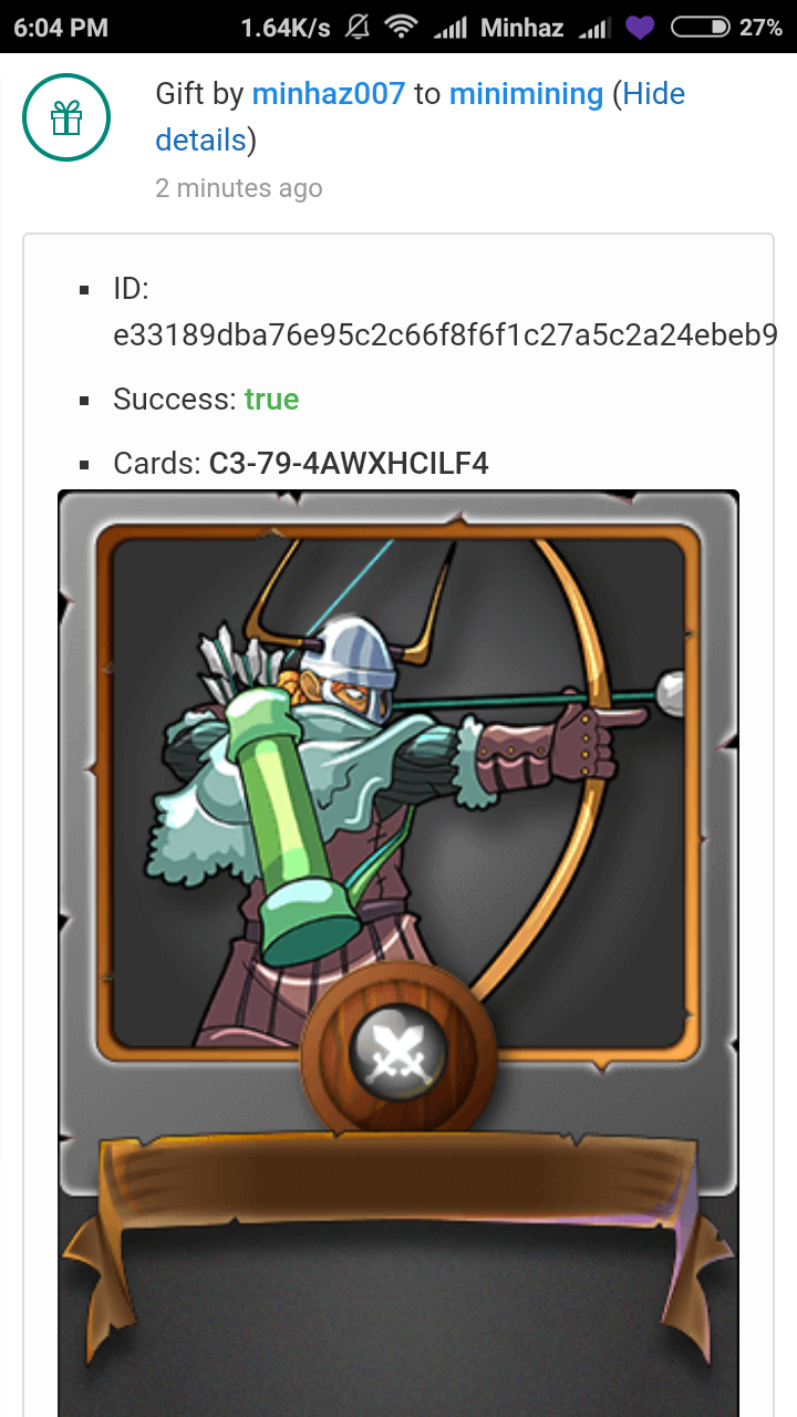 Cards have been send from @minhaz007 collection