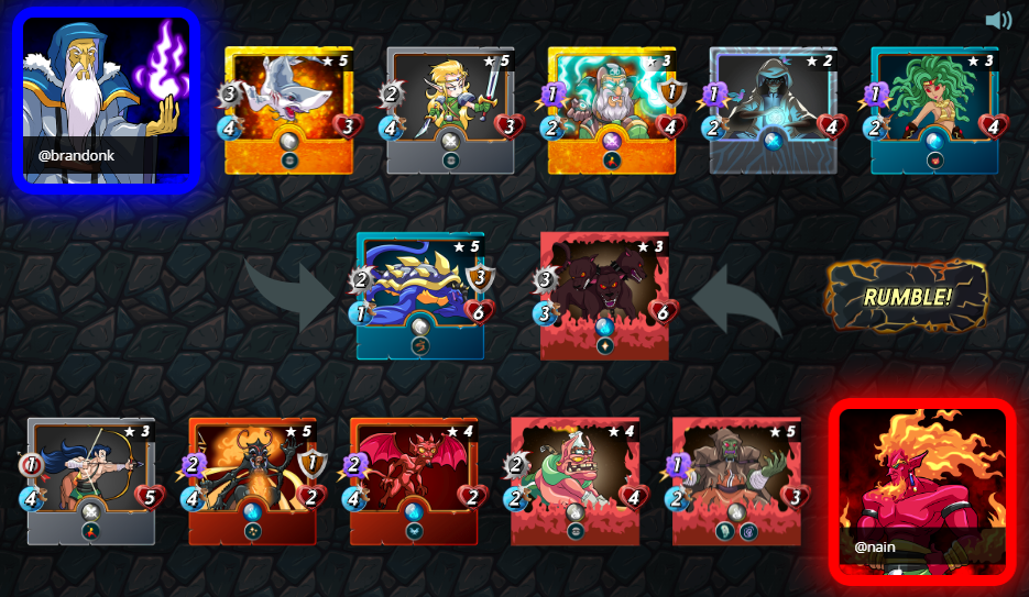 Malric Infermo was used in the battle to summon the fire team. I could have choose anyone else but prefer to use this one because it performs best for me in the low mana caps.