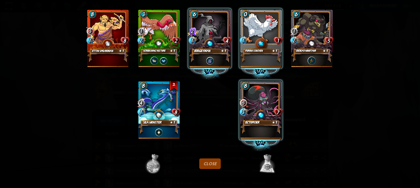 Квест бы за стихию Земли, и в этот раз выпадали вполне удобные правила и количества маны. Выпало три рарки, не самая плохая награда за эти дни.