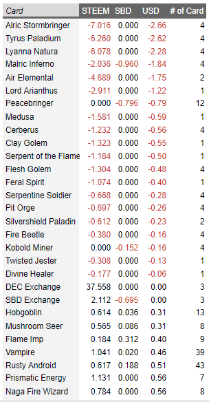 This give me a deck with a value of around $100... plus over 40 STEEM liquid Not bad for a $10 investment and 6 months worth of grinding. The best part is as I play, it will just keep going up for now!
