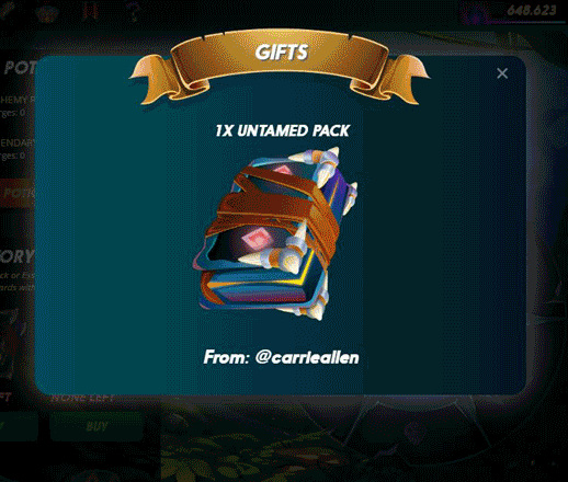 Oh my goodness!!! I am so happy to see you here! And THANK YOU for the wonderful gift and the upvote! What a great encouragement for me! I appreciate you very much and everything that you do for this community, @carrieallen and @splinterlands! I want to share this pack opening with you, my sweet friend: