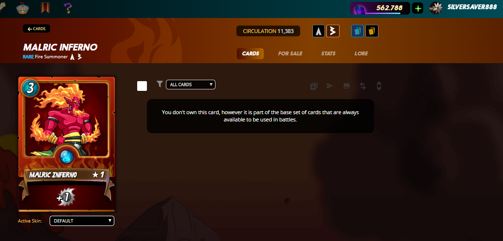 Fortunately for me, the Rare Fire Summoner MALRIC INFERNO is a playable card in my team, even if I don't own one "because it is part of the base set of cards that are always available to be used in battles". SWEETl!!!