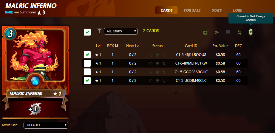 Если бы было несколько карт, то была бы доступна опция "Объединить" (для того, чтобы повысить уровень карты)