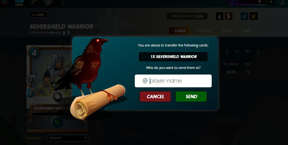 А теперь мы проведём небольшой эксперимент и отправим карту (какую-нибудь, мало-используемую или заменимую из Нейтральных) на другой аккаунт.
