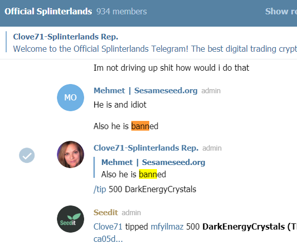 Yes- I tip people all day long in there- I came in mid convo- I was not sure who he was talking about - but know Admins do not just ban or kick someone out for no reason at all. You just kept constantly trashing Splinterlands to the point of trying to get other son board with you. Also- I see you are a serious drugwars player - so we get this a lot where people want top trash the name of one game as they are with another. Like grapthar said you were temporarily banned. Good luck to you and drugwars. ....
