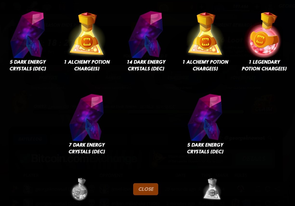 Well, not a single reward card. Did get 31 DEC, 2 alchemy potions and 1 legendary potion. Can't get gold legendary cards every day.