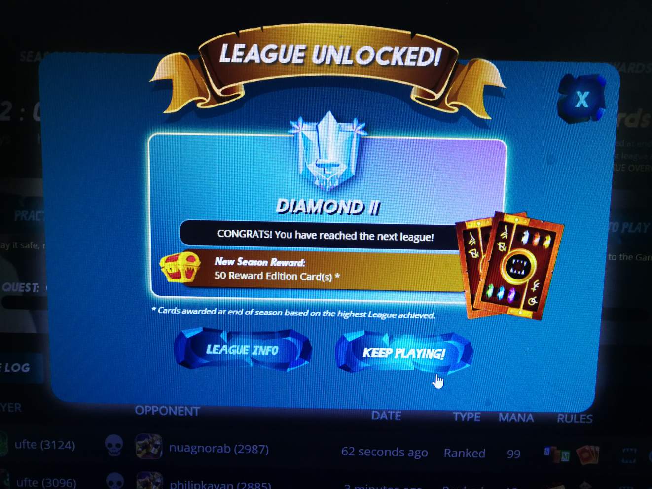 Hello, mortals! For the first time, I have unlocked Diamond 2 league and I am very proud of myself :)
