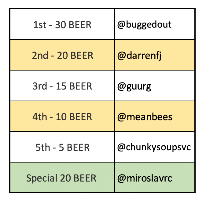 As the @beerlover act as well as a Sponsor for this great activity and today we are happy to announce the winners